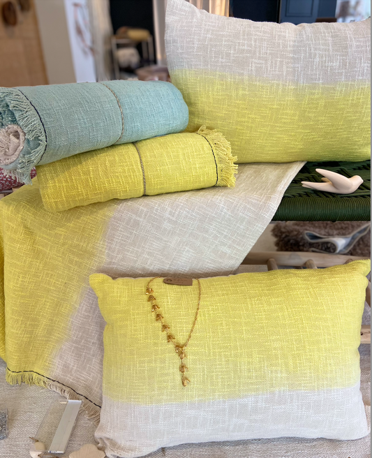 Coussin en coton Tie and Dye – Citrus et Aqua