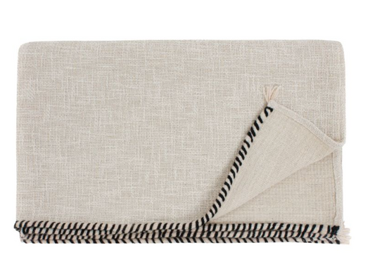 Plaid Écru en coton flammé finition passepoil